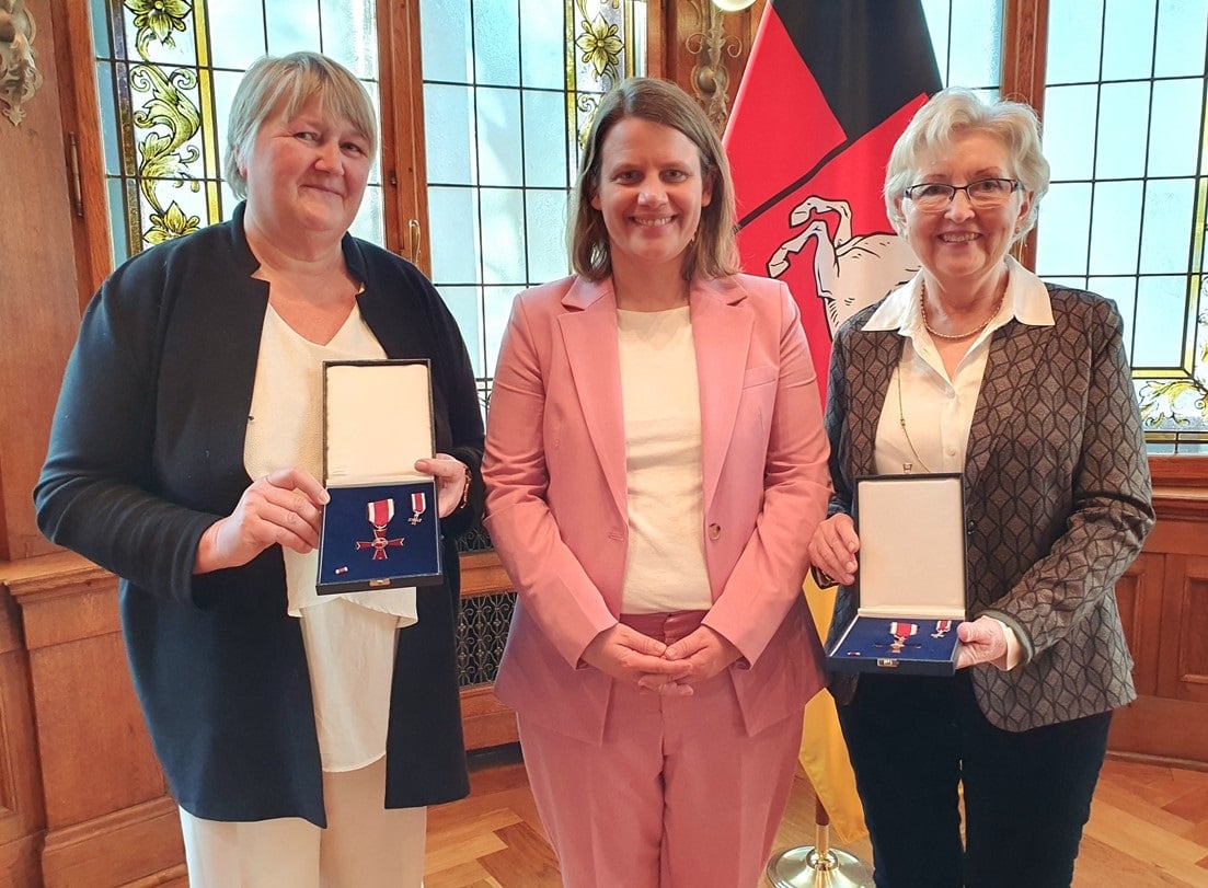 Die beiden ehemaligen Lehrerinnen Edith Sassen und Johanna Evers sind Anfang des Jahres von Kultusministerin Julia Willie Hamburg für ihr Engagement für das Saterfriesische ausgezeichnet worden. Sie erhielten in Hannover dafür das Verdienstkreuz am Bande des Niedersächsischen Verdienstordens. Geehrt wurde insbesondere der politische, aber auch ganz praktische Einsatz für die durch die EU-Sprachencharta geschützte Minderheitensprache. Edith Sassen kennen viele sicher noch als Fachberaterin und Herausgeberin vom „Middeweekskracher“. Wir gratulieren beiden Damen herzlich! – Hier die Pressemitteilung des Niedersächsischen Kultusministeriums vom 9. Januar 2023: