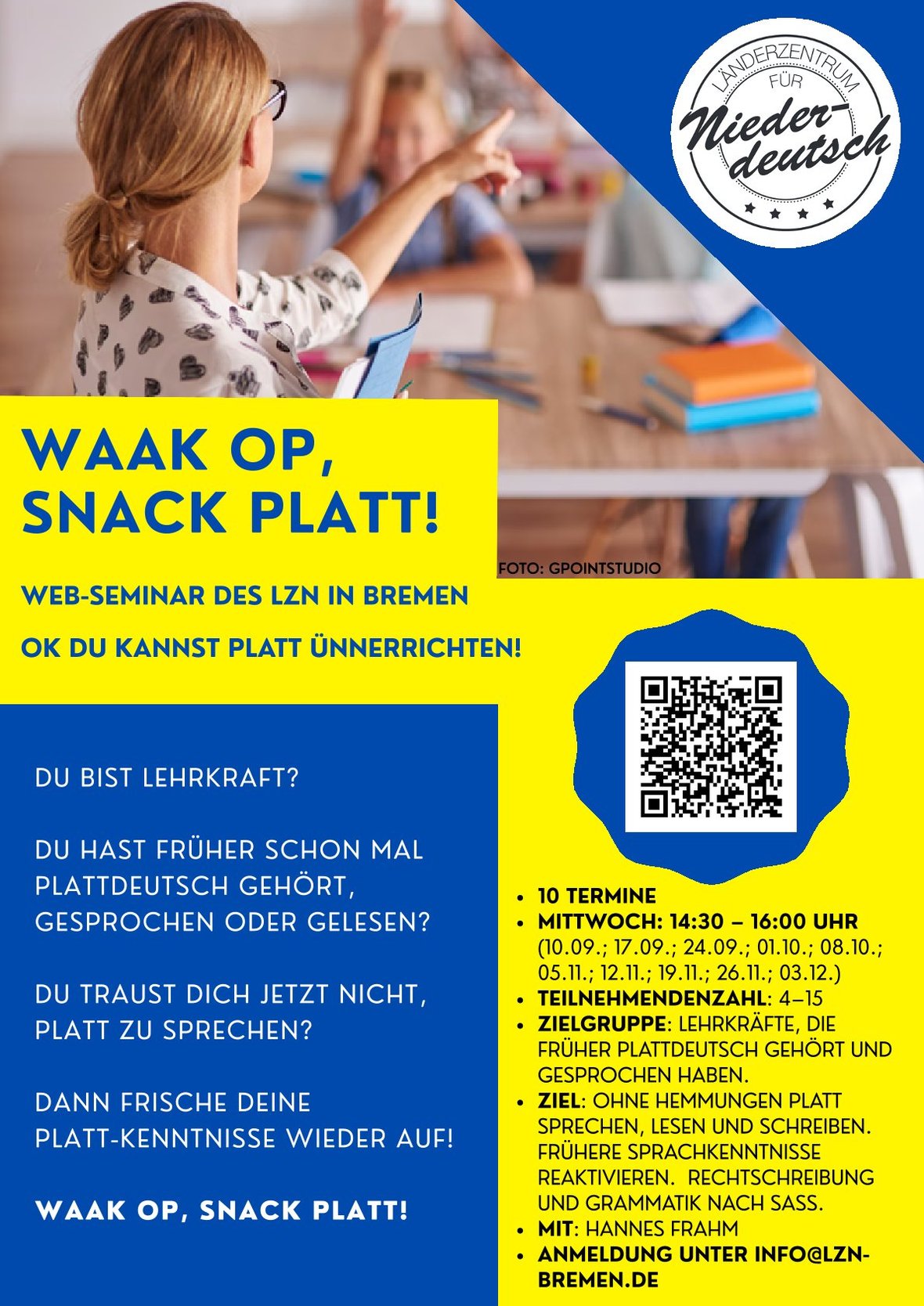 Am 19. März 2025 findet die alljährliche „Netzwerktagung Niederdeutsch“ für Modellschulen im Plaza Hotel, Hannover, unter dem Motto „Präsenz un Övertügen“ statt. Neben einem interessanten Fachvortrag von Christiane Ehlers, Leiterin des Niederdeutschsekretariats, gibt es eine Reihe von Workshops für die praktische Umsetzung im Unterricht.