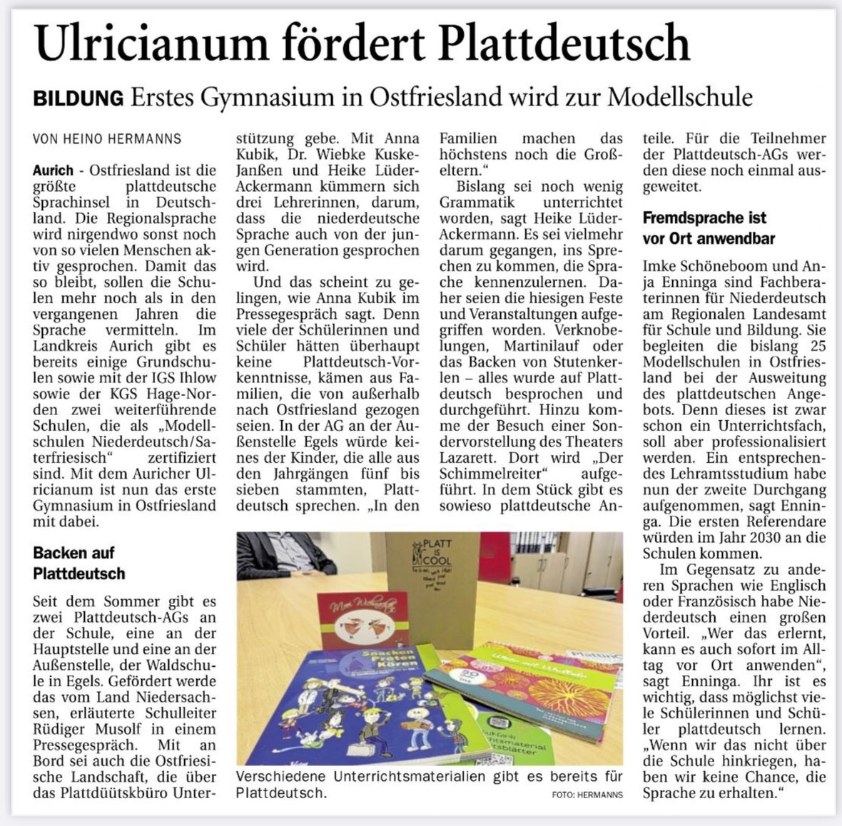 Bis zum 15. April können Bewerbungen zur Ernennung als Plattdeutsche bzw. Saterfriesische Modellschule eingereicht werden, entweder erstmals oder als Fortsetzungsantrag. Maximal drei Anrechnungsstunden werden vergeben. Das Formular ist unten zu finden, zudem häufig gestellte Fragen (Wer kann sich bewerben? Was machen Modellschulen? Wie lange wird gefördert? etc.) und die entsprechenden Antworten. Bitte auf den genauen Dateinamen achten. Aktuelle Modellschulen werden gebeten, falls noch nicht geschehen, den Abschlussbericht abzugeben (ebenfalls unten). – Auf Post freut sich RLSB-Berater Gerd Behrens (gerd.behrens@rlsb.de). Alle Infos und Dateien auch hier auf dem Bildungsportal Niedersachsen.