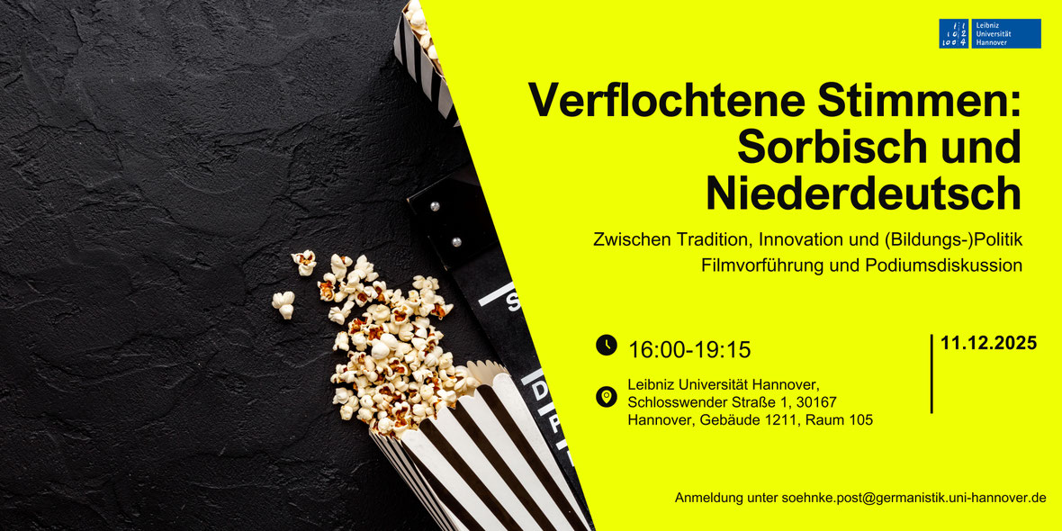 Am 11. Dezember lädt der Fachbereich Germanistik der Uni Hannover herzlich zu einem Abend ein, der die Begegnung zwischen Sorbisch und Niederdeutsch in den Mittelpunkt stellt und deren Bedeutung im bildungs-, kultur- und sprachpolitischen Kontext beleuchtet. Herausforderungen, Synergien und Unterschiede sollen im Zentrum unserer Veranstaltung stehen. Zu Gast ist die Regisseurin Grit Lemke, die ihren vielfach beachteten Film „Bei uns heißt sie Hanka“ (2023) vorstellt. Leme untersucht darin ihre eigene sorbische Herkunft und kommt auf diesem Weg zu Schlaglichtern auf Vergangenheit, Gegenwart und Zukunft einer vielfältigen Minderheitensprache und -kultur in Deutschland. – Im Anschluss an die Filmvorführung diskutieren Expertinnen und Experten über die aktuellen Herausforderungen und Perspektiven. Welche Gemeinsamkeiten und Unterschiede gibt es zwischen einer Minderheitensprache wie dem Sorbischen und einer Regionalsprache wie dem Niederdeutschen? Welche bildungspolitischen und sprachpolitischen Maßnahmen sind zum Erhalt notwendig, um beide Sprachen lebendig zu halten und ihre Weitergabe zu sichern? Und welche Rolle spielen Schulen und Universitäten dabei? – Bitte melden Sie sich an bei Dr. Söhnke Post (soehnke.post@germanistik.uni-hannover.de).