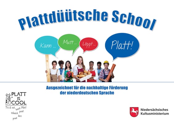 Die sieben neuen „Plattdeutsche Schulen“ erhielten aus den Händen des Kultusministers Plaketten für ihre Schulgebäude, mit denen ihr Engagement für „das Platt“ hervorgehoben wird, sowie eine Urkunde - je nach regionaler Variante in typischer Aussprache und Schreibweise. Diese Auszeichnungen hatten in der Vergangenheit bereits sieben Schulen erhalten, deren Zertifizierung als „Plattdeutsche Schulen“ heute verlängert wurde.