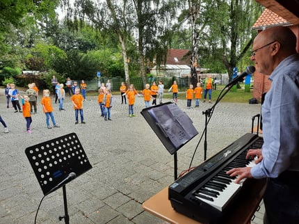So langsam wieder angekommen in Szenario A mussten noch einige holprige Stellen überwunden werden. Monatelang waren die Kinder nicht mehr in dieser Konstellation zusammen und die Klassen mussten sich erst wieder finden. Gerne wollte die Marienschule Barßel deshalb das Gemeinschaftsgefühl an der Grundschule stärken. Die Marienschule ist Projektschule Plattdeutsch und zugleich Musikalische Schule. Ein plattdeutscher Song mit einem passenden Tanz boten sich da geradezu an.