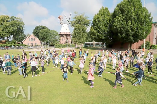 Gefilmt wurde das ganze Projekt unter anderem von einer Drohne aus. Die Kinder hatten die Möglichkeit, an einem tollen Gemeinschaftsprojekt teilzunehmen und sich gleichzeitig an der plattdeutschen Sprache zu erfreuen. – Vielleicht möchten sich noch mehr Schulen anschließen und ein plattdeutsches Gemeinschaftsprojekt starten. Das Tanztutorial ist unter folgendem Link zu finden: https://www.youtube.com/watch?v=Q9iz2hxH5d4, ein Bericht des Generalanzeigers hier: https://www.ga-online.de/-news/artikel/1017147/Tanzen-staerkte-Gemeinschaftsgefuehl?fbclid=IwAR0Ru6HeFrM0NKDUD8WsnWl8fS3DmmG3TwTAJZKgN_qsrMwk9faIpF6hziU.